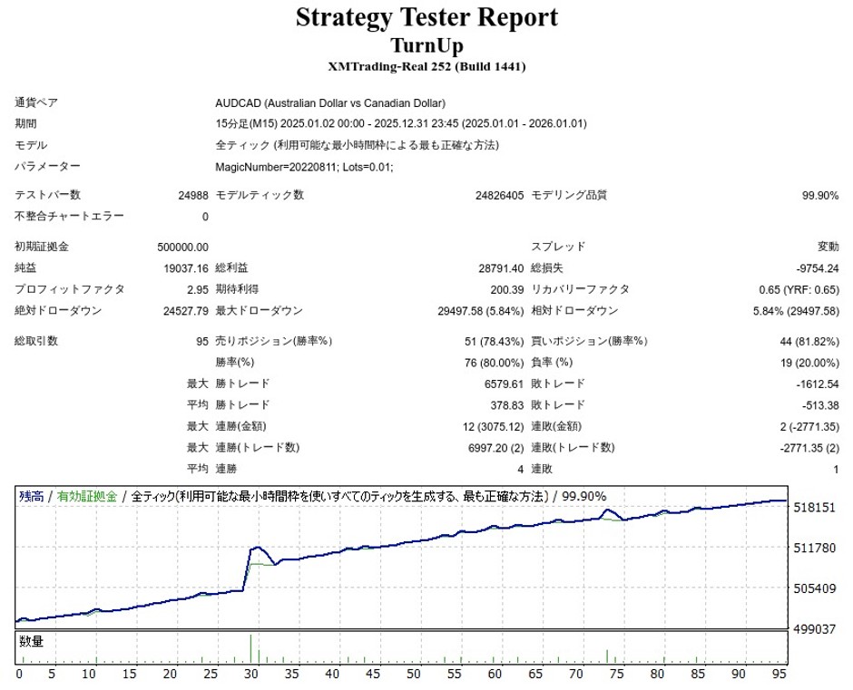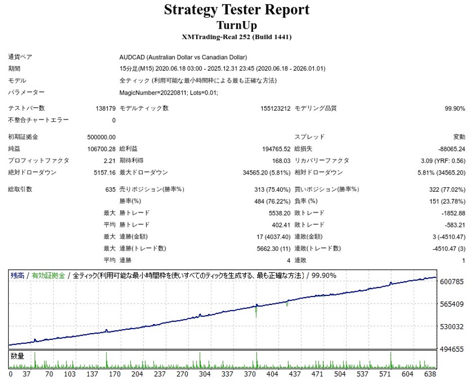 GogoJungleのTurn Up EA (ターン・アップEA)のバックテストをしてきました。