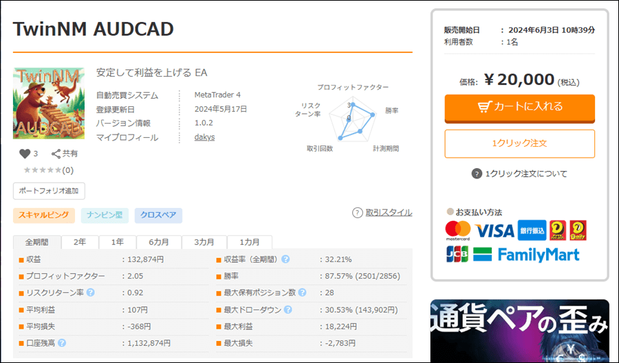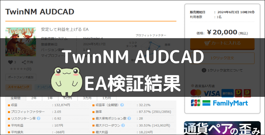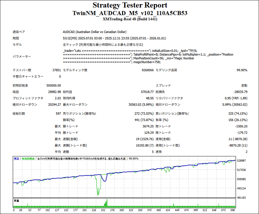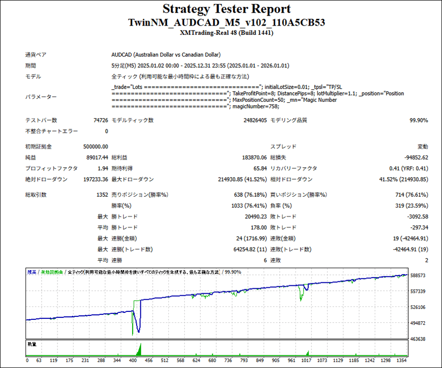 TwinNM AUDCADはナンピンタイプのEAですが、成績はどうなのでしょうか。