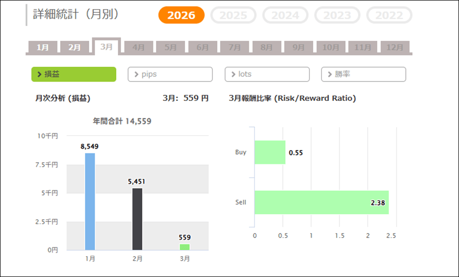 | 平均利益 | 129円 | 最大利益 | 3,674円 |