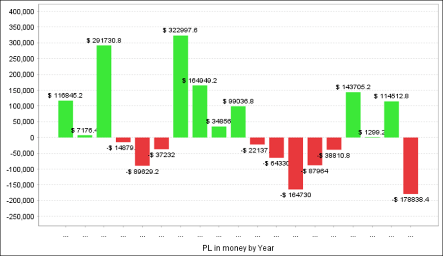 年次の成績を見ると、勝ったり負けたりの成績で、2017年からマイナスが多くなっています。