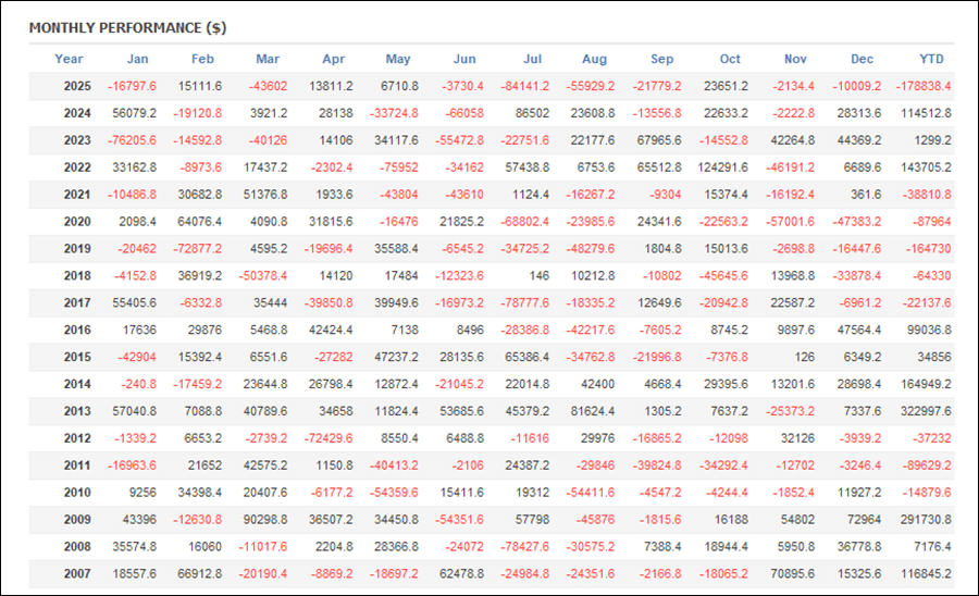 2025年はマイナスの月が多く、トータルでマイナスです。