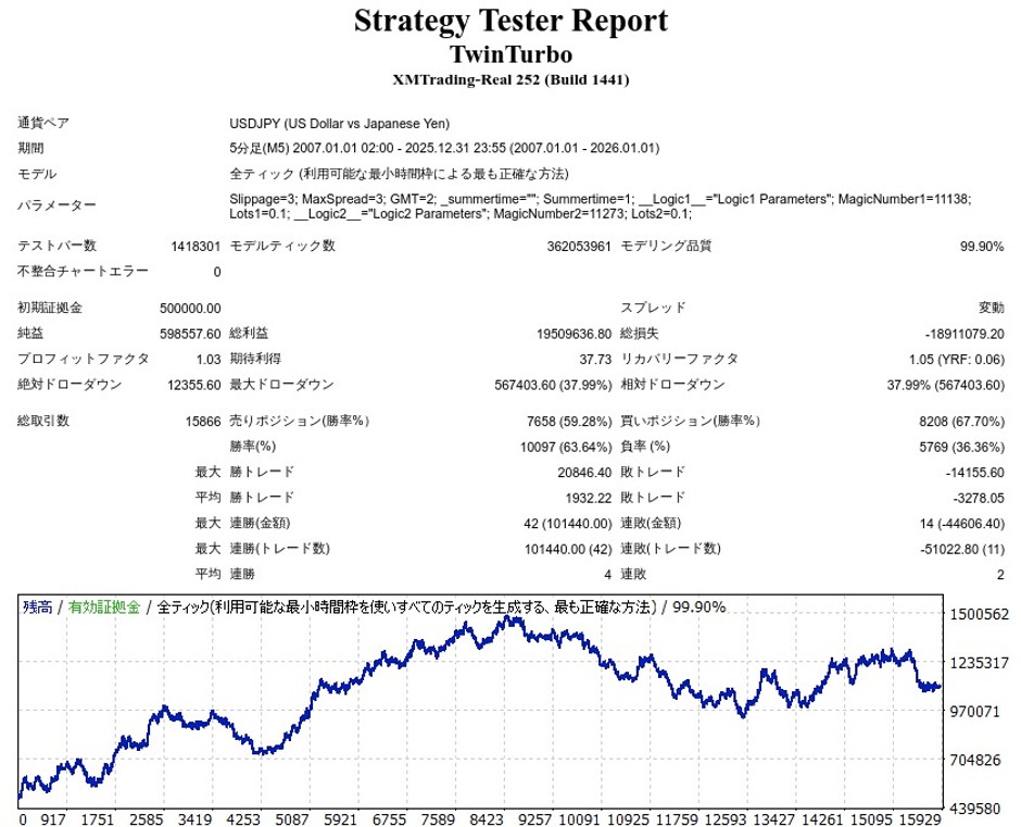 TwinTurboはUSDJPYのスキャルピングEAですが、成績はどうなのでしょうか。