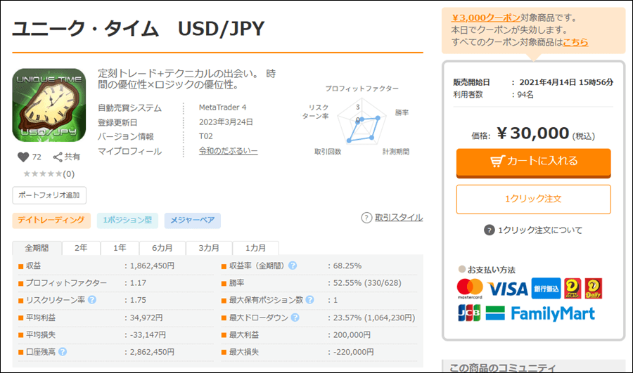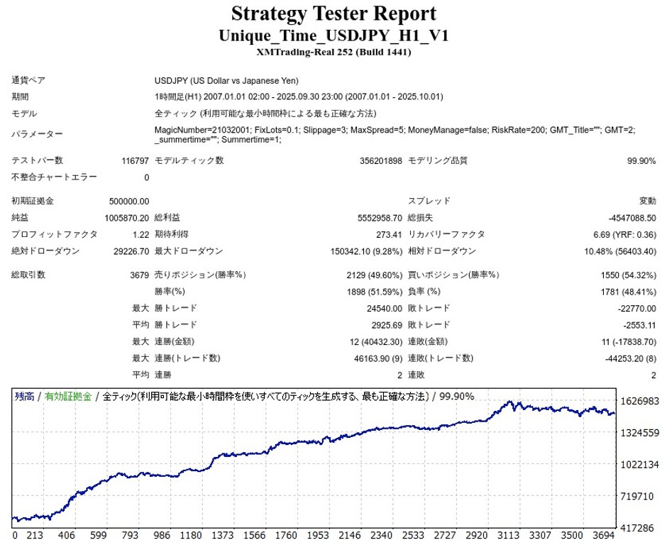 ユニーク・タイム USD/JPYは成績はどうなのでしょうか。