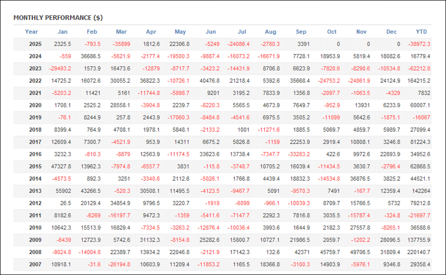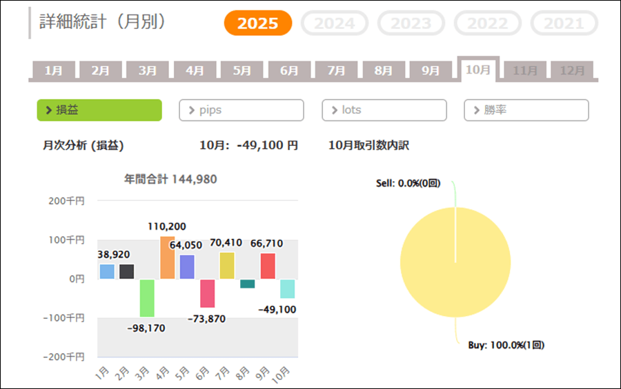 月次分析を見ると、2025年は今のところトータルでプラス、2024年はいくつかマイナスになっていて、トータルでマイナスです。