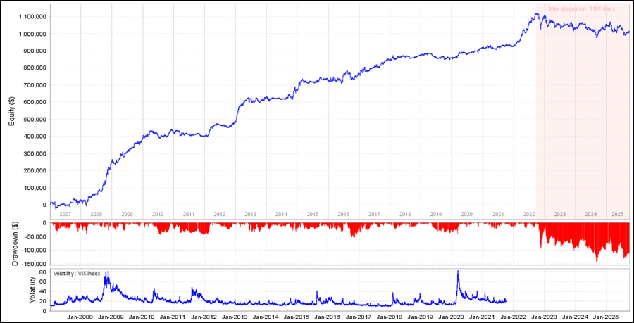 ユニーク・タイム USD/JPYをQuantAnalyzerで見てみると、長期では順調に利益を積み上げています。