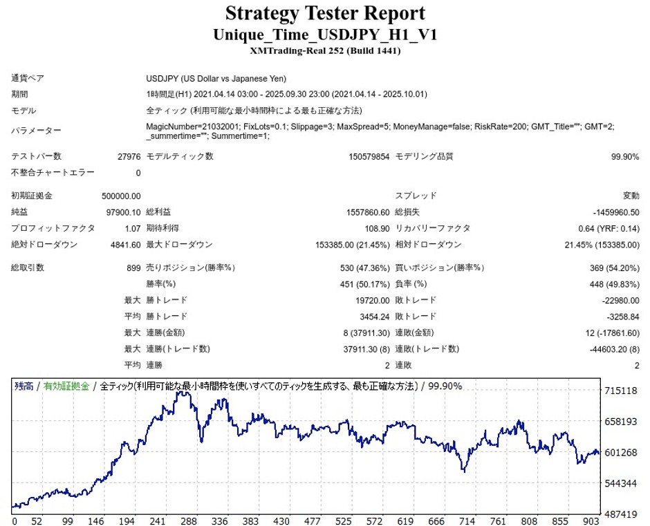 - ユニーク・クロージングEAのEA検証結果