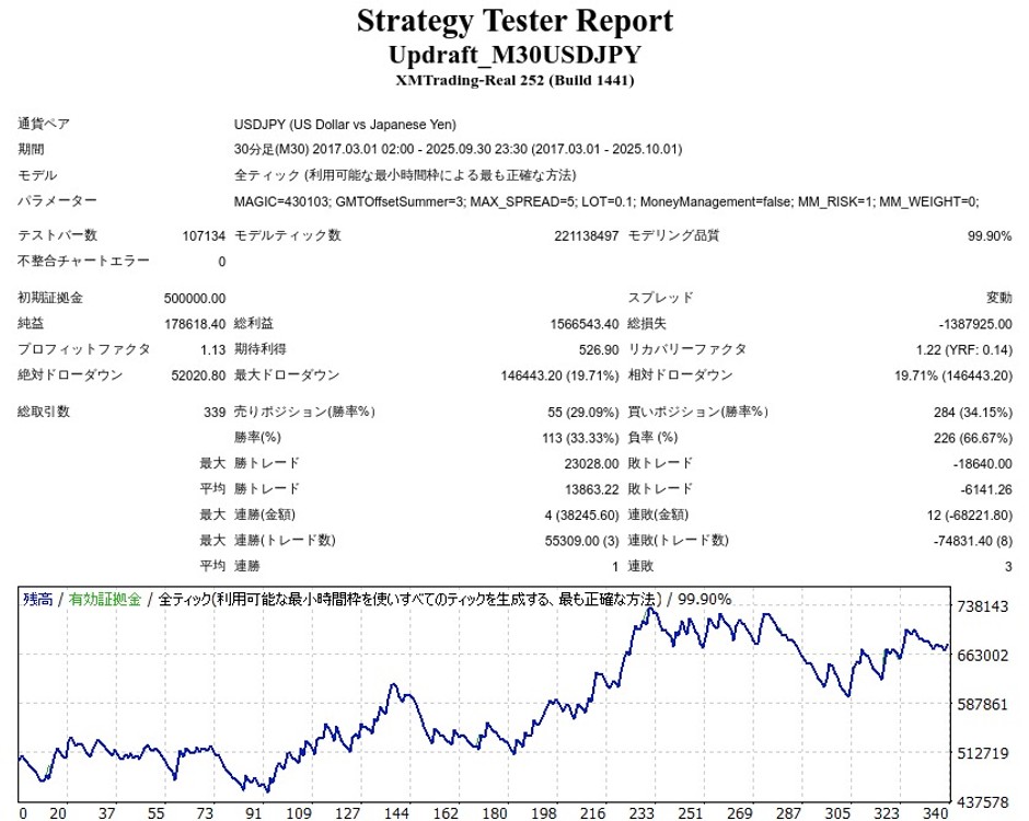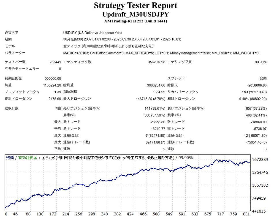 UpdraftはUSDJPYのスイングトレードEAですが、成績はどうなのでしょうか。