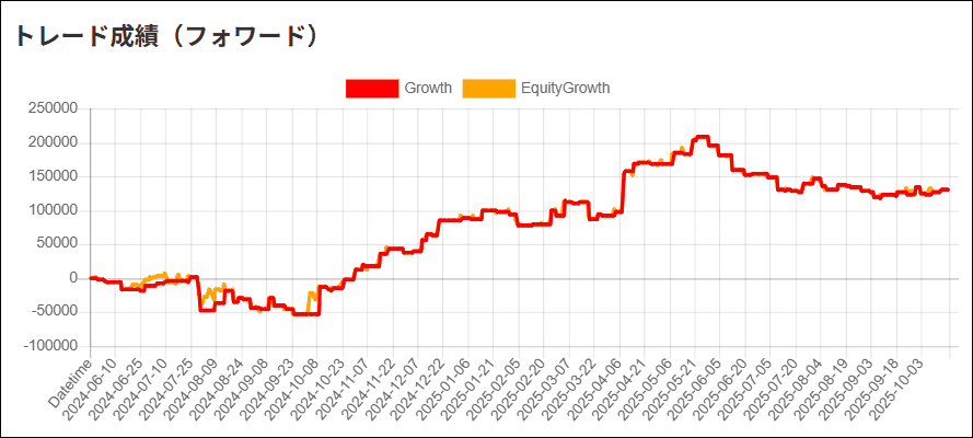 「バックテスト結果とフォワードテスト結果が違いないか」、「過去データに最適化し過ぎていないか」など参考にしてください。