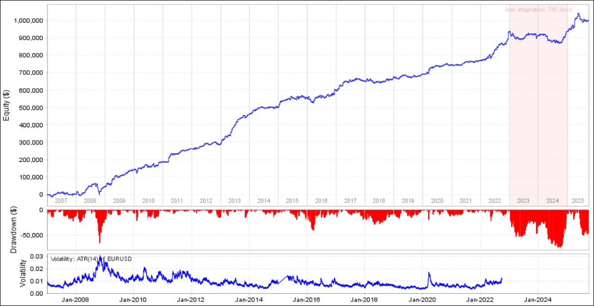 USDJPY HACKERをQuantAnalyzerで見てみると、2023年~2024年が停滞しています。