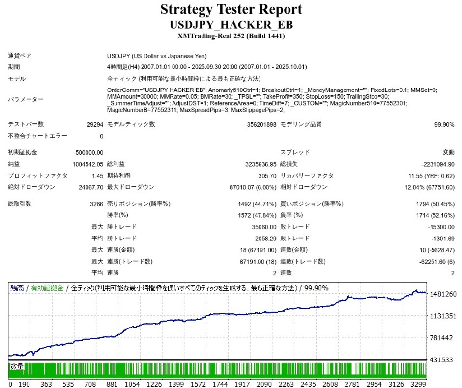 USDJPY HACKERはUSDJPYのデイトレードEAですが、成績はどうなのでしょうか。
