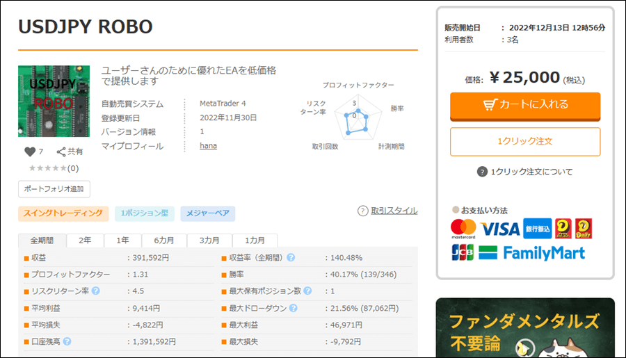 hanaさんはUSDJPY ROBOのほかにもEAを出品されています。
