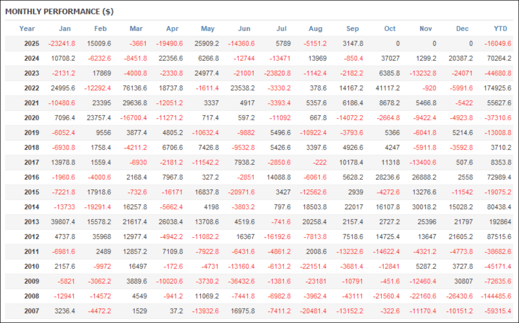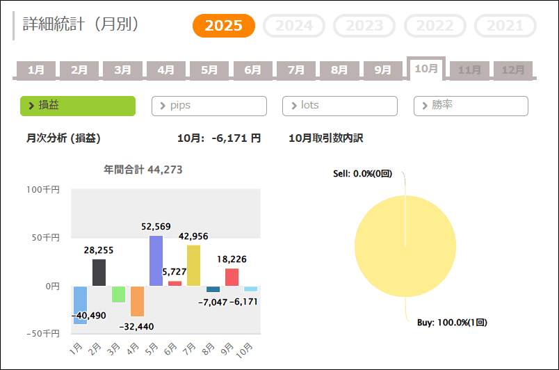 月次分析を見ると、2025年は今のところマイナスで、2024年は10月に大きく伸びていてトータルでプラスです。