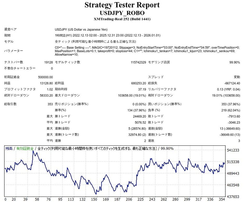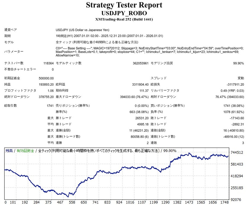 | 初期証拠金 | 500,000円 | 勝率 | 37.96% |