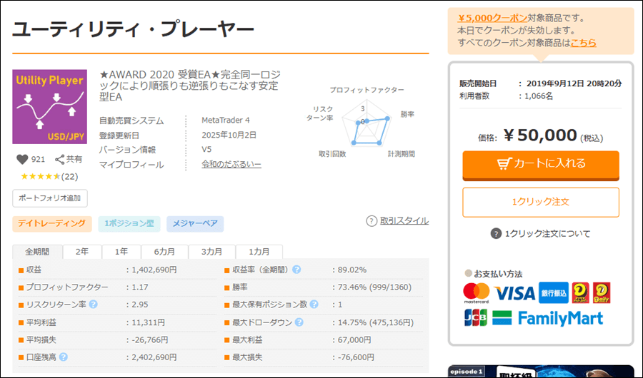 ユーティリティ・プレーヤーがリリース(2019年9月12日)してから5年経ちますが、リリース後はプラス成績となりました。