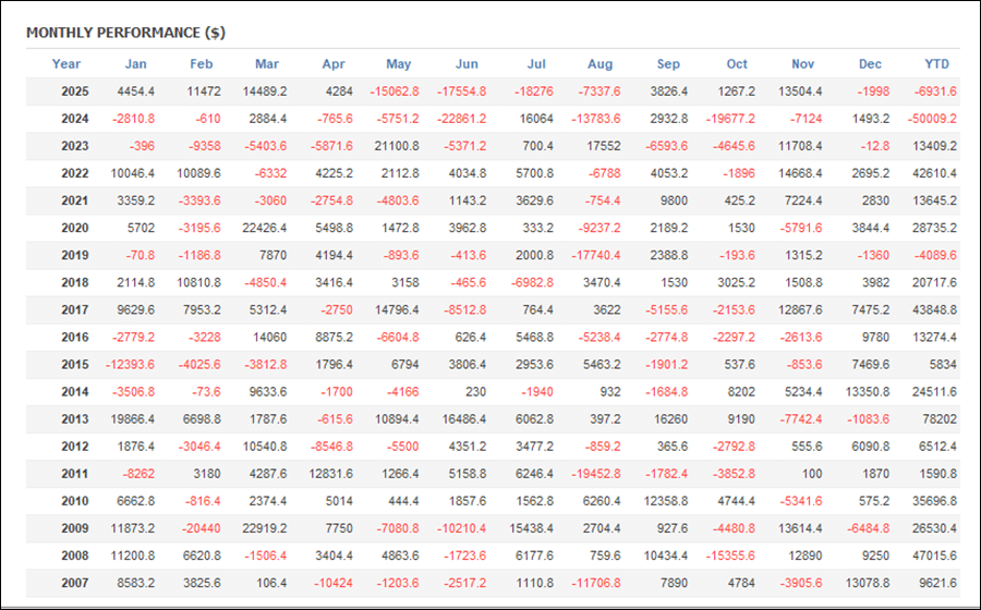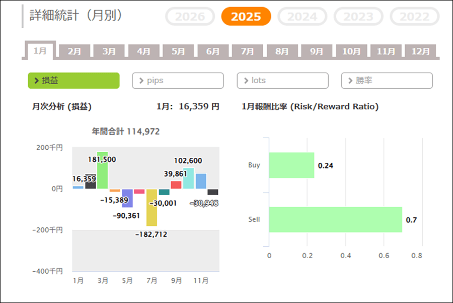 月次分析を見ると、2025年はトータルでプラスです。