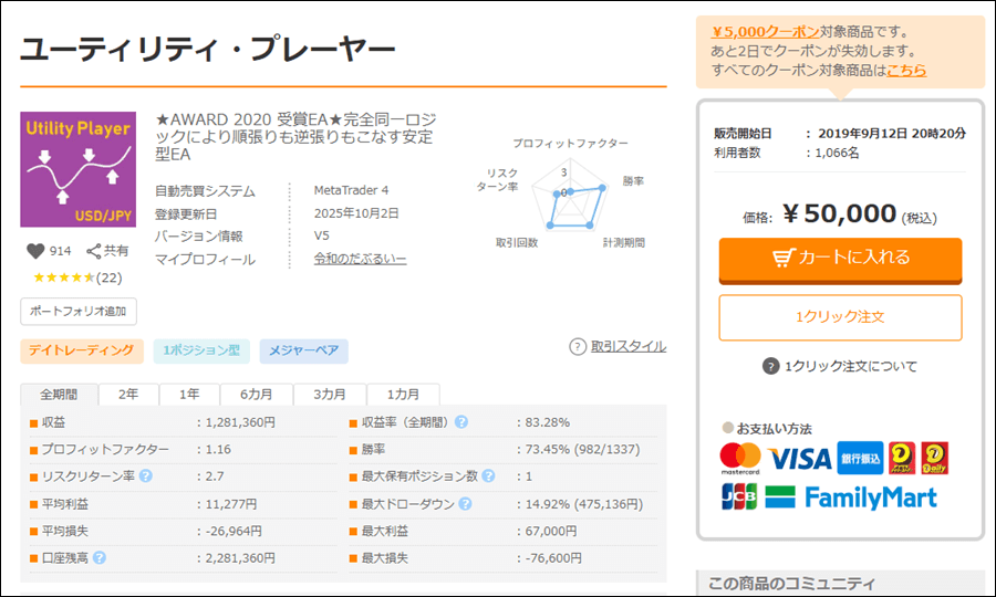 ユーティリティ・プレーヤーがリリース(2019年9月12日)してから5年経ちますが、リリース後はプラス成績となりました。