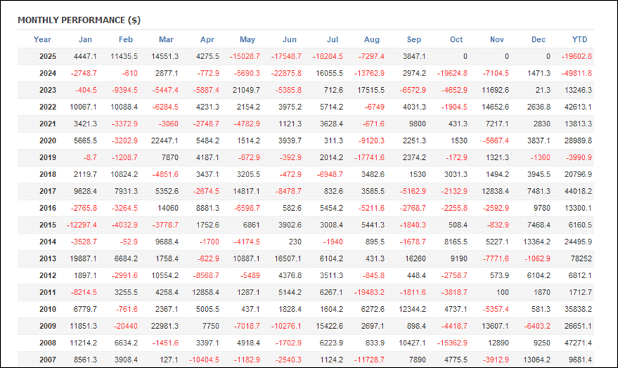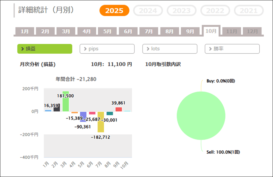 月次分析を見ると、2025年は今のところトータルでマイナスです。