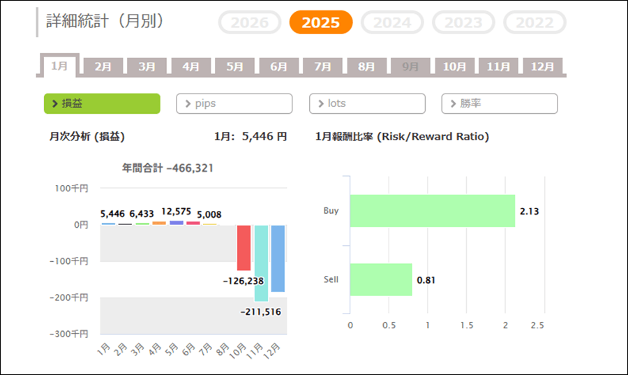 | 平均損失 | -4,876円 | 最大損失 | -197,135円 |