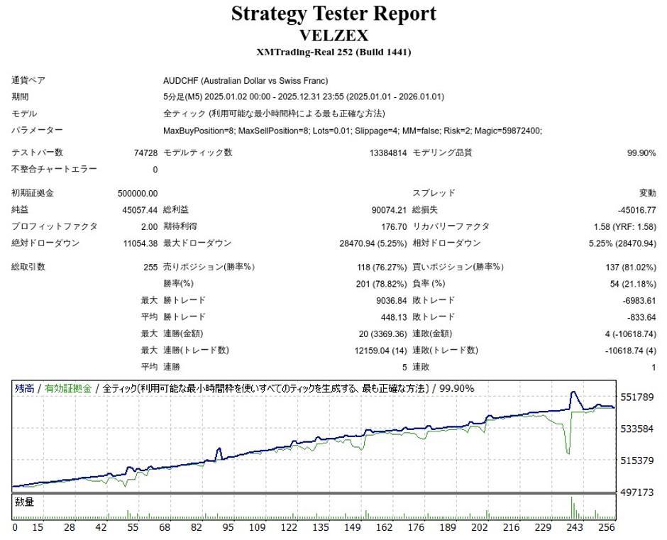 VELZEXは多通貨ペア対応のナンピンEAですが、成績はどうなのでしょうか。