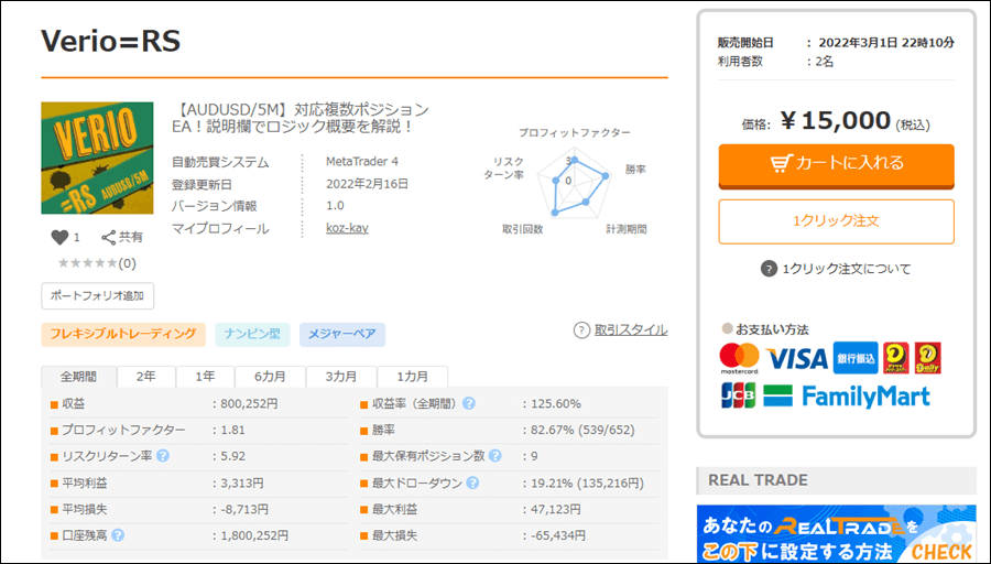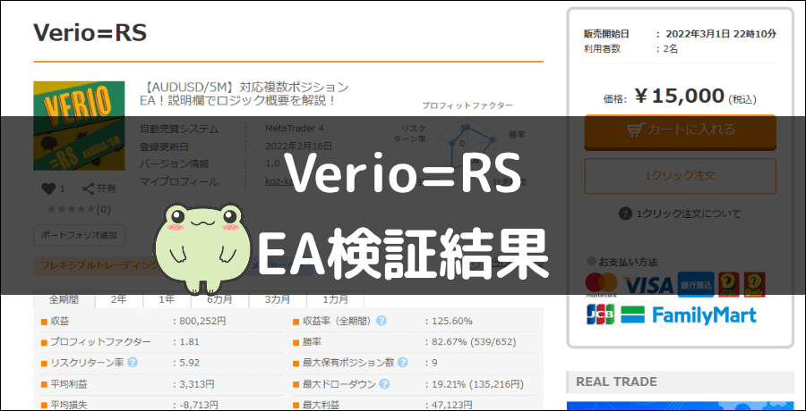 Verio=RSの詳細を確認する【AUDUSD/5M】対応複数ポジションEA!説明欄でロジック概要を解説! | GogoJungle