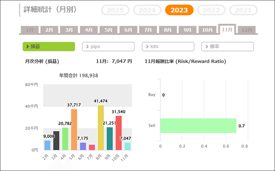 2022年からの月ごとの成績を検証しました。