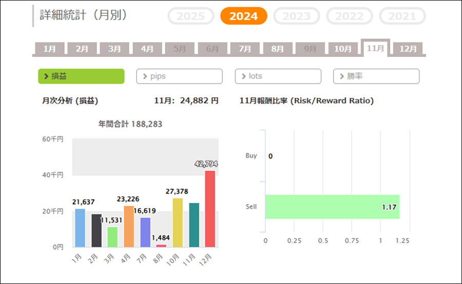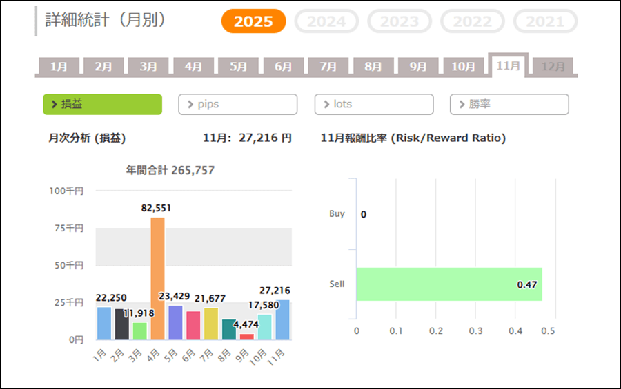 2022年~2025年の月間成績をまとめると合計でマイナスの結果となりました。