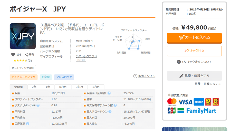 ボイジャーX JPYはドル円、ユーロ円、ポンド円対応のデイトレEAのようですが、成績はどうなのでしょうか。