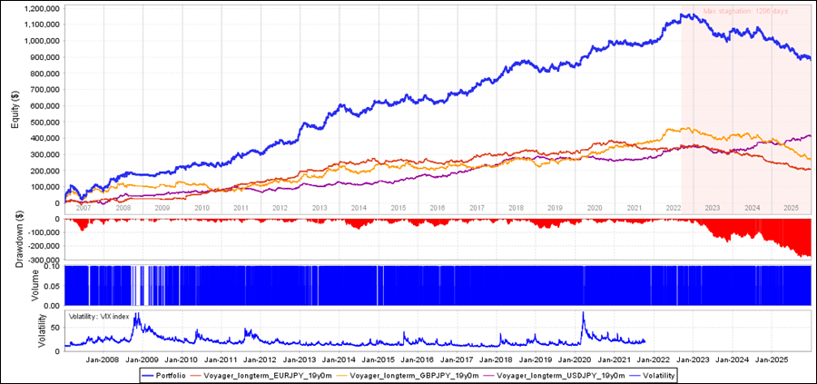 ボイジャーX JPYの2通貨ペア合計をQuantAnalyzerで見てみると、直近が少し停滞しています。