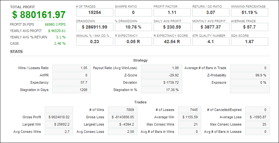 | プロフィットファクター | 1.06 | 勝率 | 51.10% (3161/6186) |