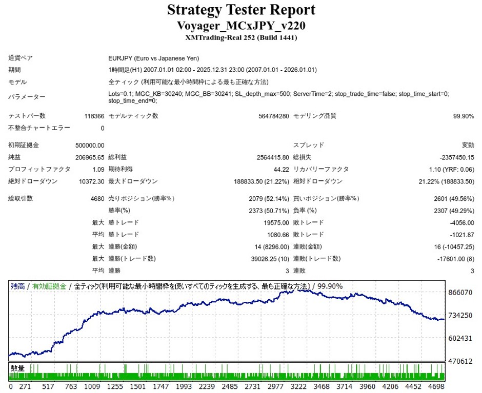 GogoJungleの有料EA「ボイジャーX JPY」をTDS(Tick Data Suite)を使ってバックテストを行ったので、結果を紹介して行きます。
