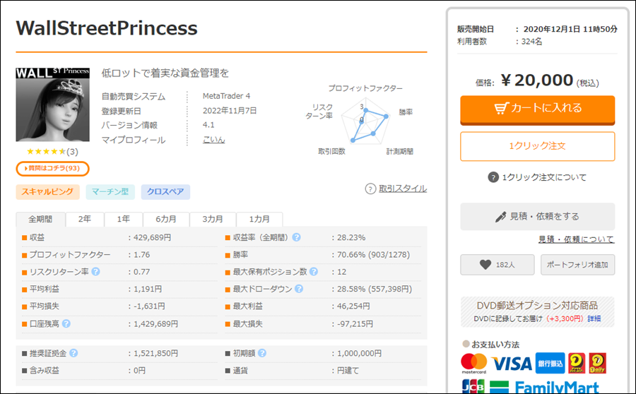 WallStreetPrincessはナンピン・マーチンゲールタイプのEAですが、成績はどうなのでしょうか。