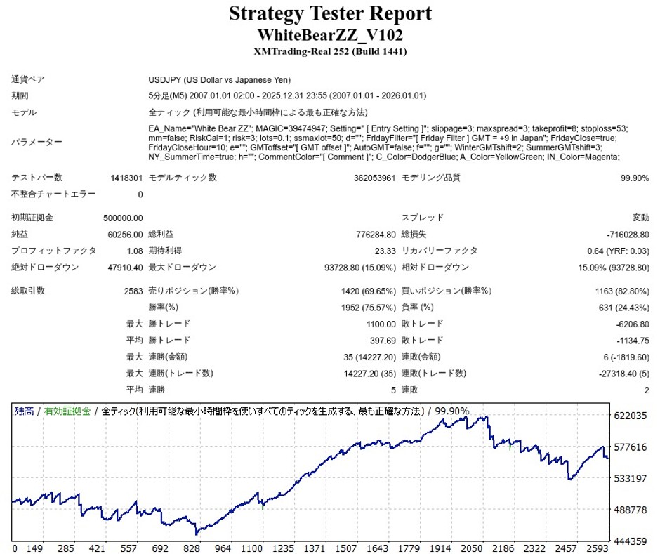 White Bear ZZはRaccoさんの提供するUSDJPY専用の朝スキャEAですが、成績はどうなのでしょうか。
