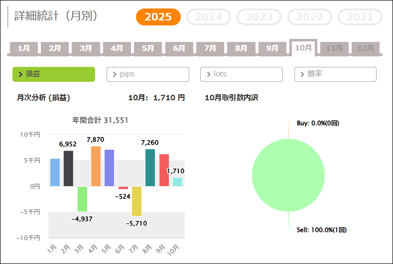 | 平均利益 | 1,131円 | 最大利益 | 5,930円 |