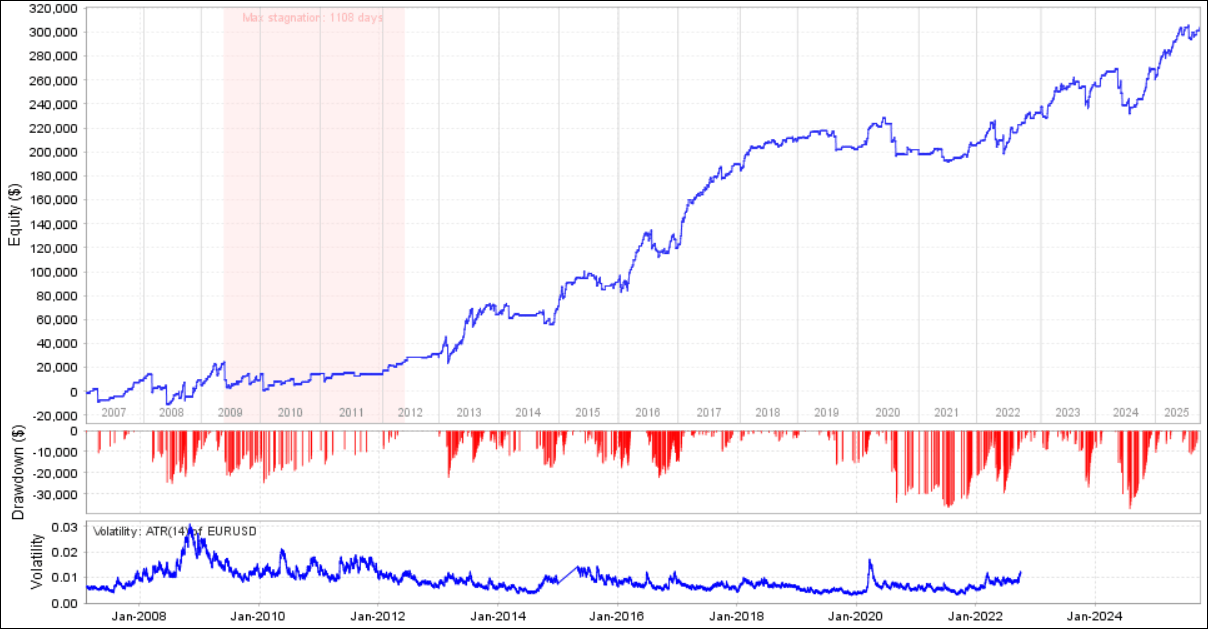 ウィズダムペンギン USD/JPYをQuantAnalyzerで見てみると、前半は停滞していますが、2013年からは順調に利益を積み上げています。