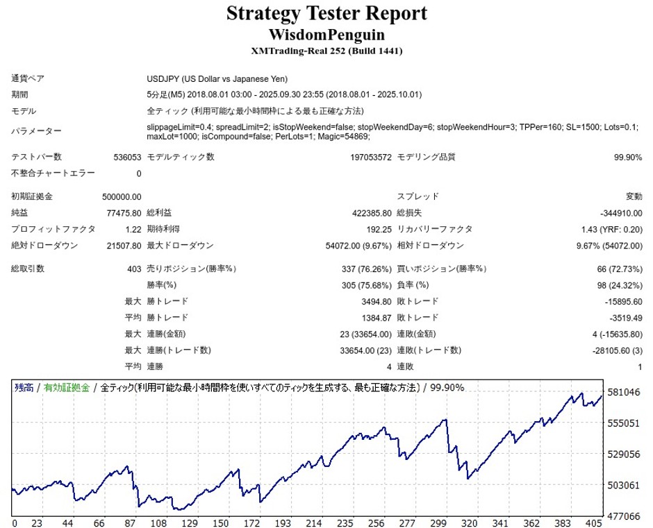 では、ウィズダムペンギン USD/JPYを詳しく見て行きましょう。