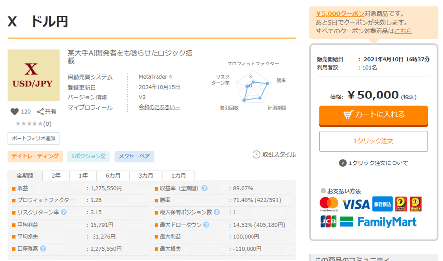 X ドル円は公開成績を見ると、公開直後は少し停滞していましが、2022年から利益を積み上げています。