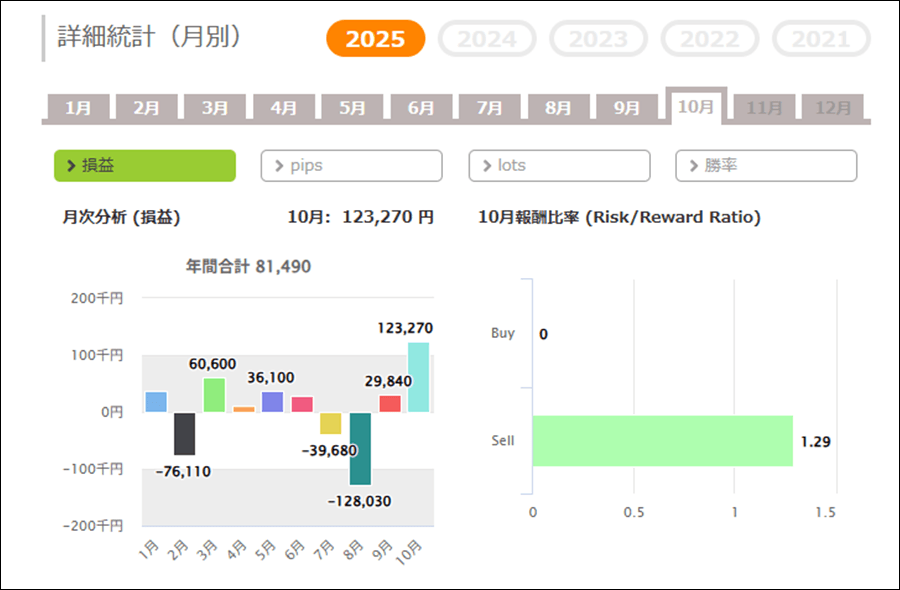 月次分析を見ると、マイナスの月もありますが、大きく利益を上げている月もあり全体としてプラスになっています。