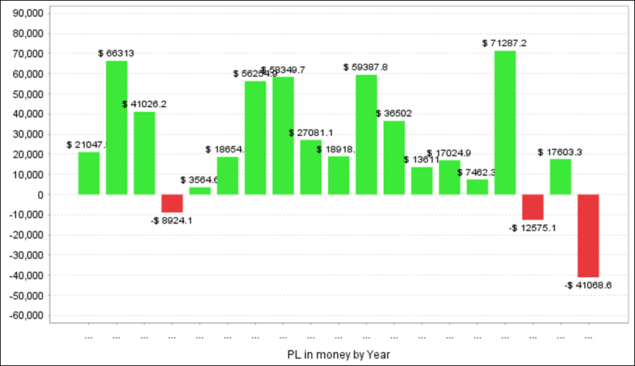X ドル円は過去18年で+47.1万円の収益でした。最大ドローダウンは低めです。