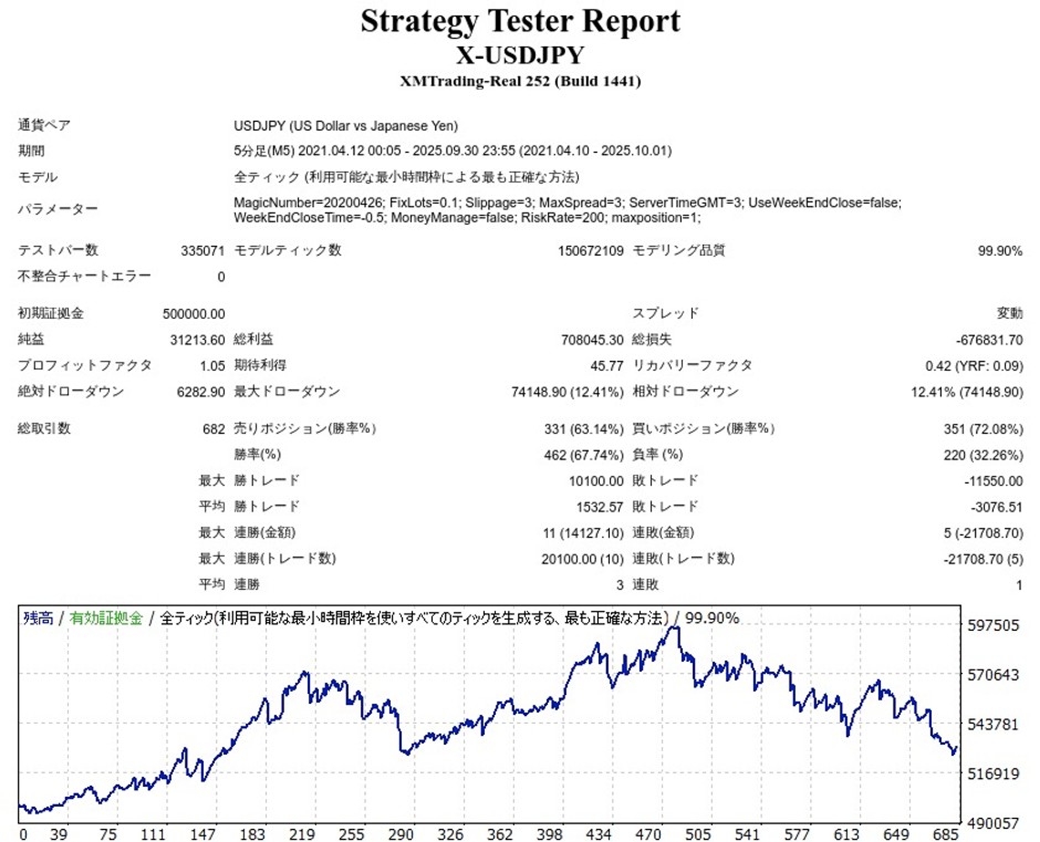 初期証拠金 | 500,000円 | 勝率 | 67.82% |
