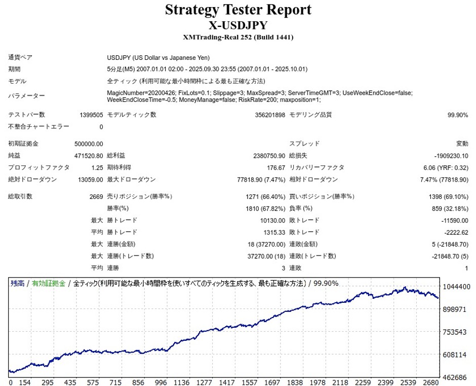 X ドル円はドル円のスキャルピングEAですが成績はどうなのでしょうか。