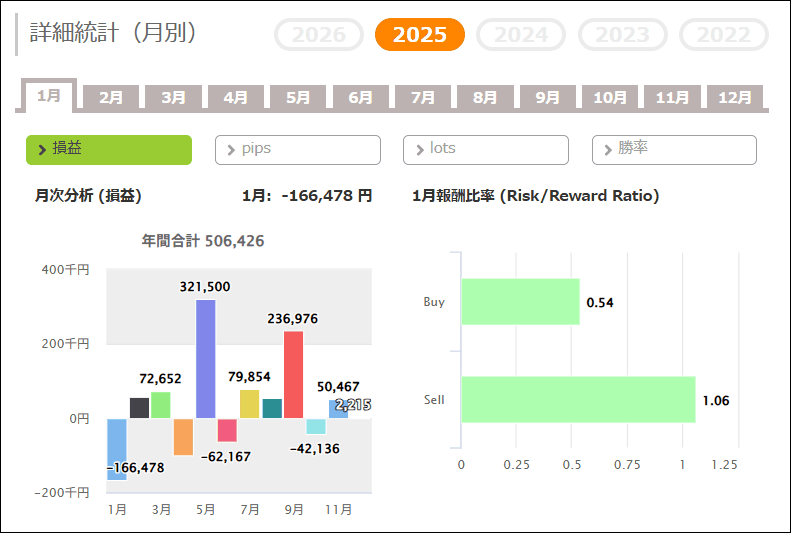 月次分析を見ると、マイナスの月もありますがトータルではプラスになっています。