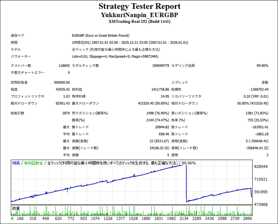 GogoJungleの有料EA「ゆっくりナンピン EURGBP」をTDS(Tick Data Suite)を使ってバックテストを行ったので、結果を紹介して行きます。