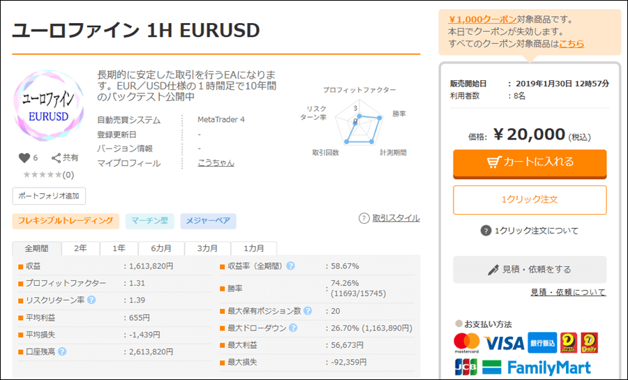 ユーロファイン 1H EURUSDはナンピンマーチンタイプのEAですが、成績はどうなのでしょうか。