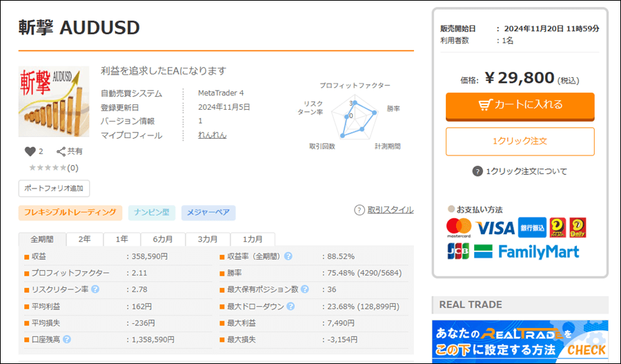 斬撃 AUDUSDの公開成績を見ると、リリースしてから順調に利益を積み上げています。
