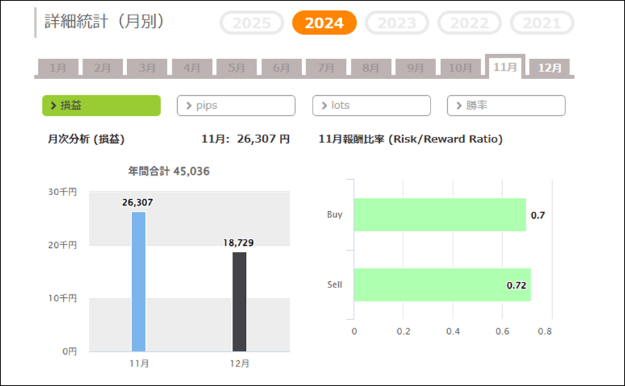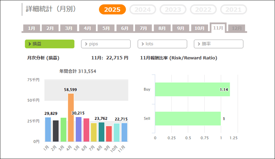 | 収益 | +303,564円 | +185,801円 | +59,978円 | +280,407円 |