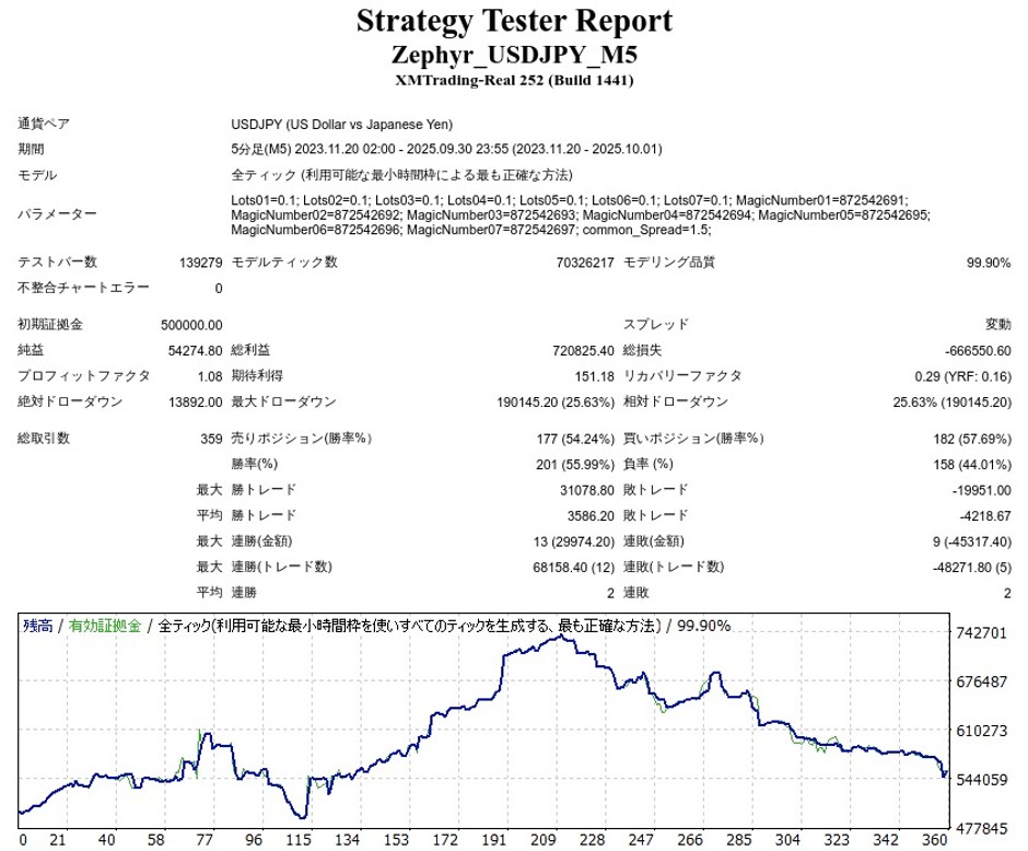| 初期証拠金 | 500,000円 | 勝率 | 55.99% |
