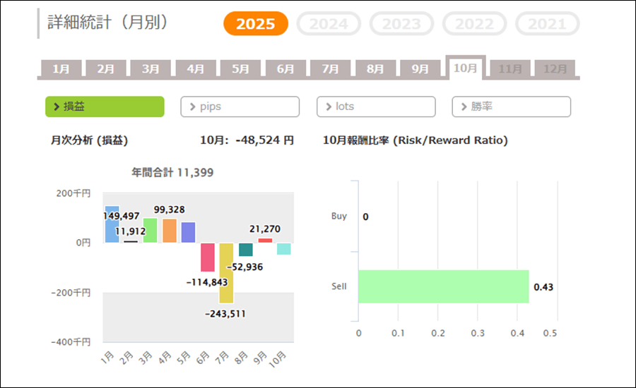 月次分析を見ると、2025年は今のところトータルでプラスです。