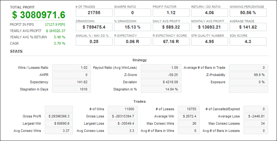 | プロフィットファクター | 1.10 | 勝率 | 49.43% (1090/2205) |