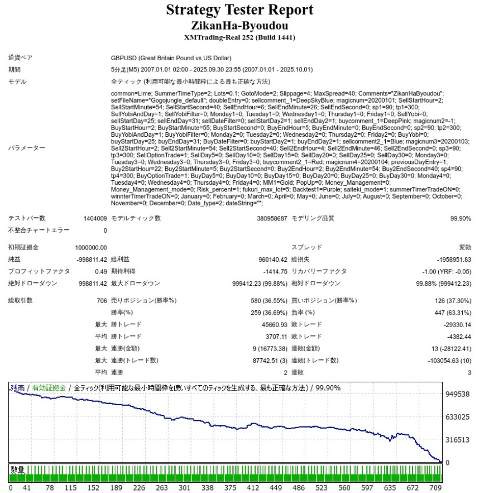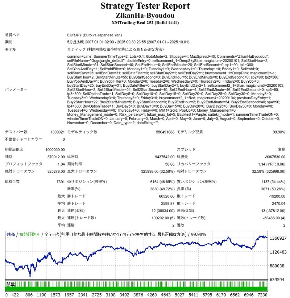 GogoJungleの有料EA「時間は平等」をTDS(Tick Data Suite)を使ってバックテストを行ったので、結果を紹介して行きます。